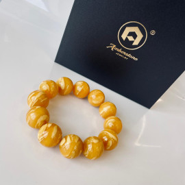 سوار عنبر البلطيق الأصلي المصنوع يدويًا عالي الجودة باللون الليموني الشفاف