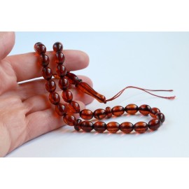 Baltic Amber Tespih Red Cognac Rare Color Misbaha 33 Beads, Handmade