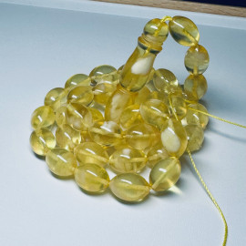 Yellow and White Amber Prayer Beads, Amber Misbaha, 39 beads