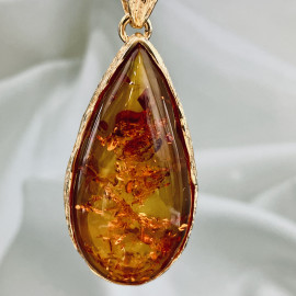 Cognac Baltic Amber Pendant, Natural Amber Gold-Plated 925 Silver Necklace