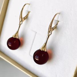 Cherry Baltic Amber Earrings, Natural Amber Gold-Plated English Hooks