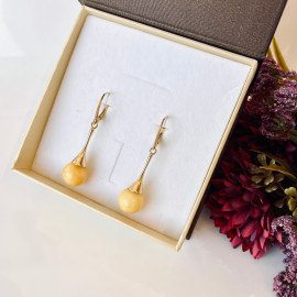 Yellow Baltic Amber Earrings, Natural Amber Gold-Plated English Hooks