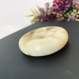Yellow and White Baltic Amber Donut Pendant, Natural Amber Circle Necklace Charm