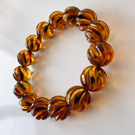 Bracelet on elastic stretch thread handmade of polished Baltic amber beads; simply slide bracelet on and off wrist.